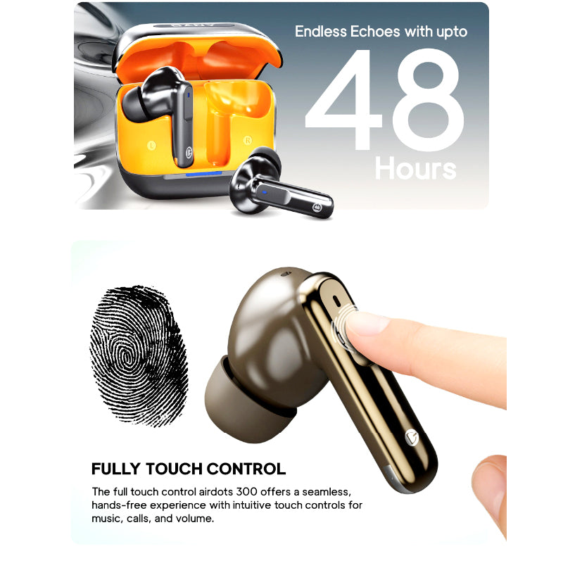 Featuring advanced Quad Mic ENC (Environmental Noise Cancellation), the Airdot 300 Pro ensures crystal-clear call quality by eliminating background noise. Whether you’re on a business call, in a noisy environment, or gaming online, your voice remains sharp and uninterrupted.